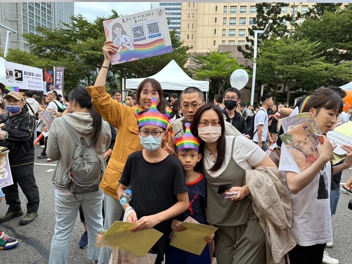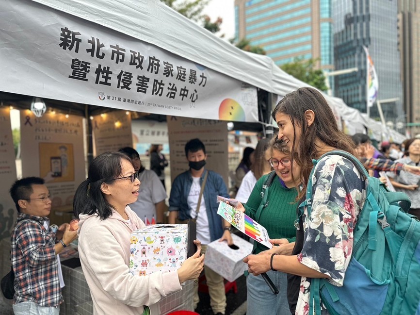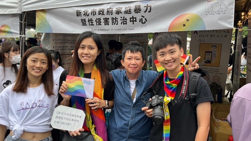 家防中心於臺灣同志遊行的彩虹市集設置攤位,一同提倡多元性別親密關係暴力防治觀念