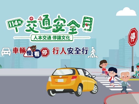 交通部114年主題為「人本交通-停讓文化」,主標語為「車輛慢看停、行人安全行」;另為因應本市114年交通事故受傷人數增加且主要事故肇因多為「未保持行車安全距離」,故本市新增第2主題標語為「不超速、不搶快、保持安全距離,避免碰撞」。